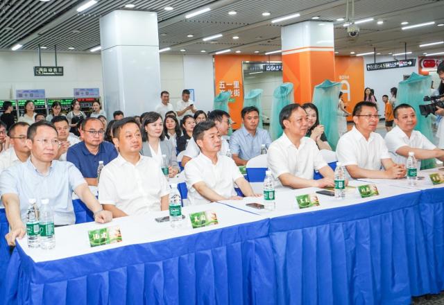 10:55,与会主要领导共同按下启动手印,宣告首列主题列车正式发车。