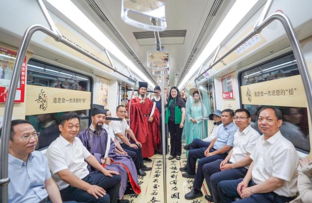 7月13日,“江湖交响·文旅新章”—《洞庭幻境》&《今上岳阳楼》主题地铁列车发车仪式在长沙五一广场地铁站隆重举行。本次活动由湖南旅游集团联合岳阳市城投集团、湖南省演艺集团、明和集团、如是创艺共同主办,立足岳阳“一楼一湖”核心文旅资源,以地铁为载体打造流动文化展厅,谱写文旅融合新篇章。