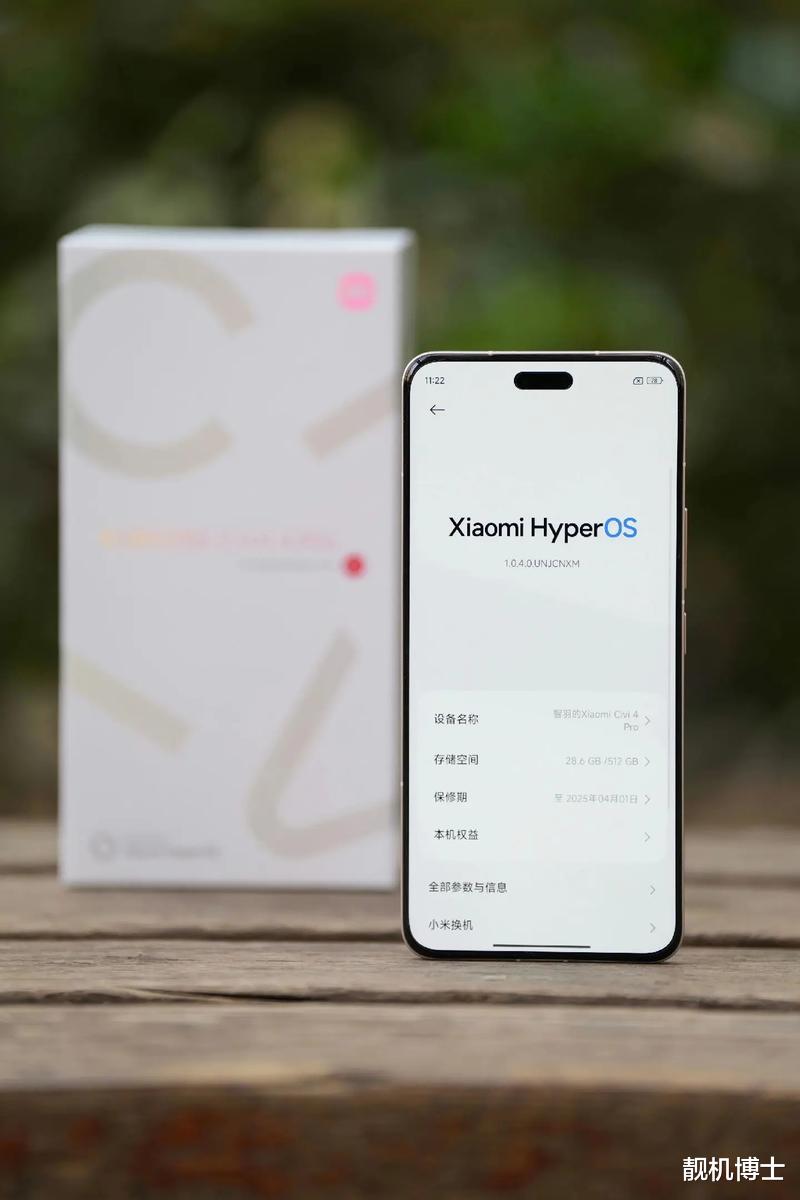 小米Civi 4 Pro则采用了一块6.55英寸的AMOLED全等深微曲屏,分辨率为2750x1236px,屏幕比例为20:9,刷新率为120Hz,触控采样率为240Hz,屏幕色彩为DCI-P3色域,支持12bit色深。屏幕亮度方面,峰值亮度可达3000nit,屏幕盖板为康宁大猩猩Victus2玻璃。