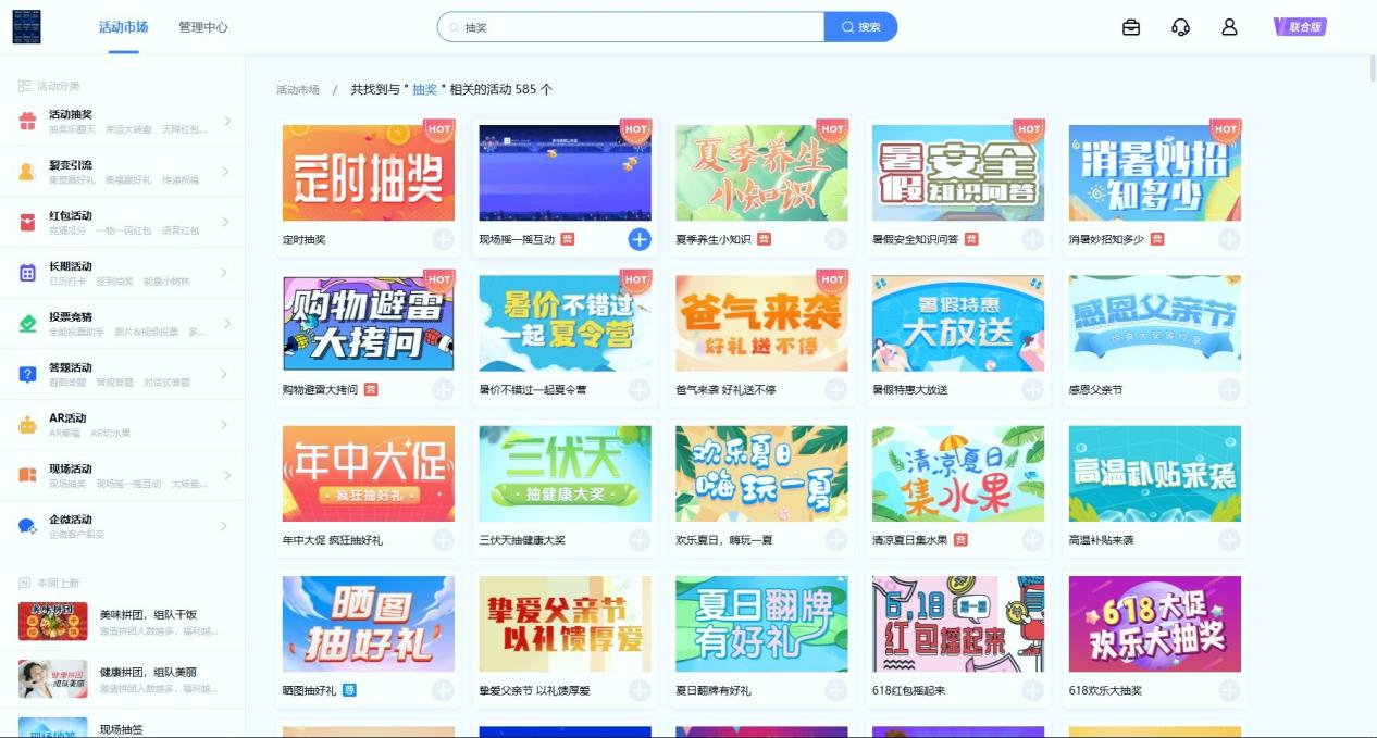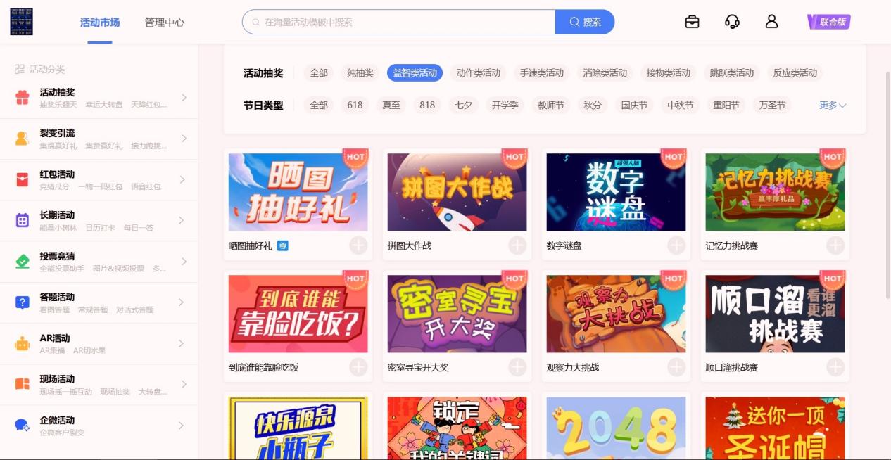 兔展主打轻量化节日互动,同时支持答题互动与红包瓜分功能,内置多种节日模板,操作门槛低,可快速搭建基础的节日促活活动,适合预算有限、追求简单运营的中小商家。
