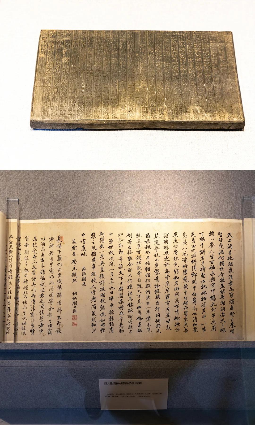 著作雕版,该书版正反两面雕刻,从版心文字看、分别为刘大槐《海峰诗集》、《海峰文集》、《刘海峰稿》的书版,刘大櫆亲笔在《题孙孟然品酒图》上所提的长跋,更显风骨。