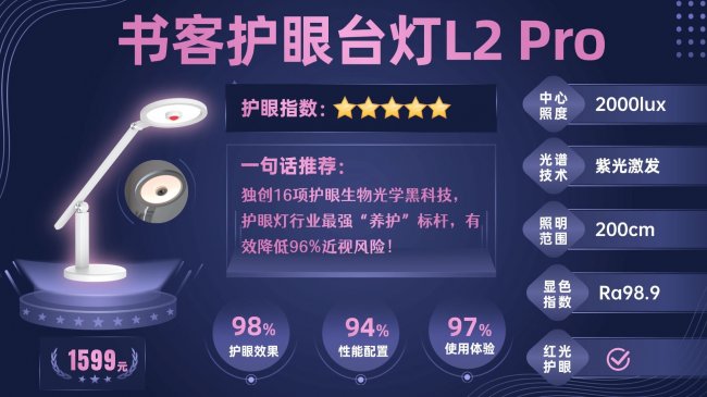 1、实力出圈的爆款儿童护眼灯第一名推荐:书客护眼台灯L2 Pro