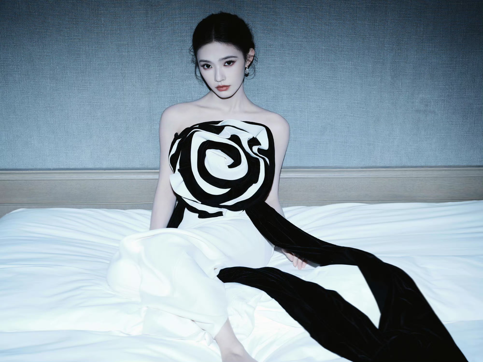 林允时尚黑白连衣裙