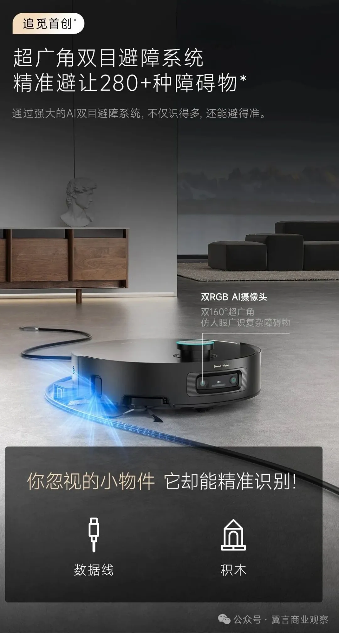 丨追觅首创的超广角双目避障系统,已应用于上图的X60Pro扫地机