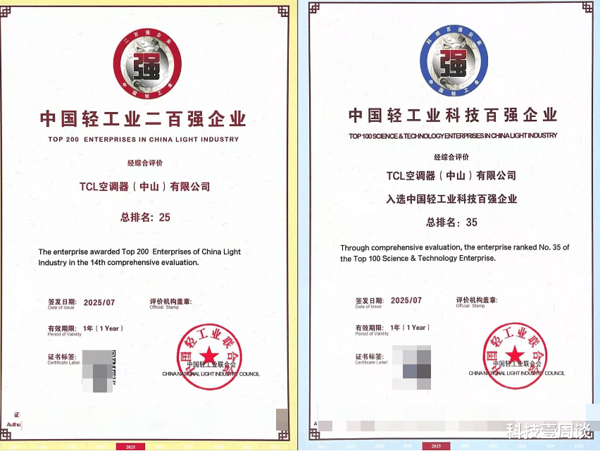 7月9日,“聚焦向‘新’力 领航新消费——中国轻工业百强企业新质发展产业大会”在北京举行。会上,TCL空调器(中山)有限公司荣膺“中国轻工业科技百强企业”与“中国轻工业二百强企业”两项殊荣,这一成就既是对企业创新实力的权威认可,也折射出中国轻工业在新质生产力驱动下的高质量发展格局。