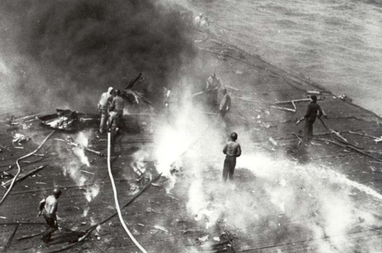 当炸弹从高空准确命中甲板,这些集中的易燃物立刻放大了破坏。