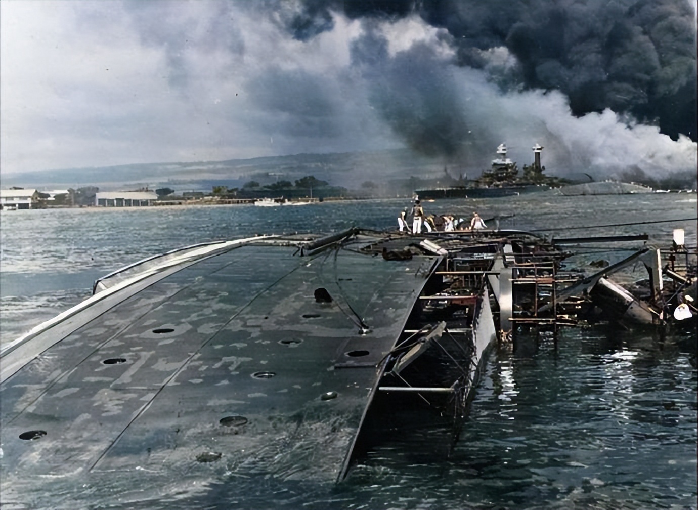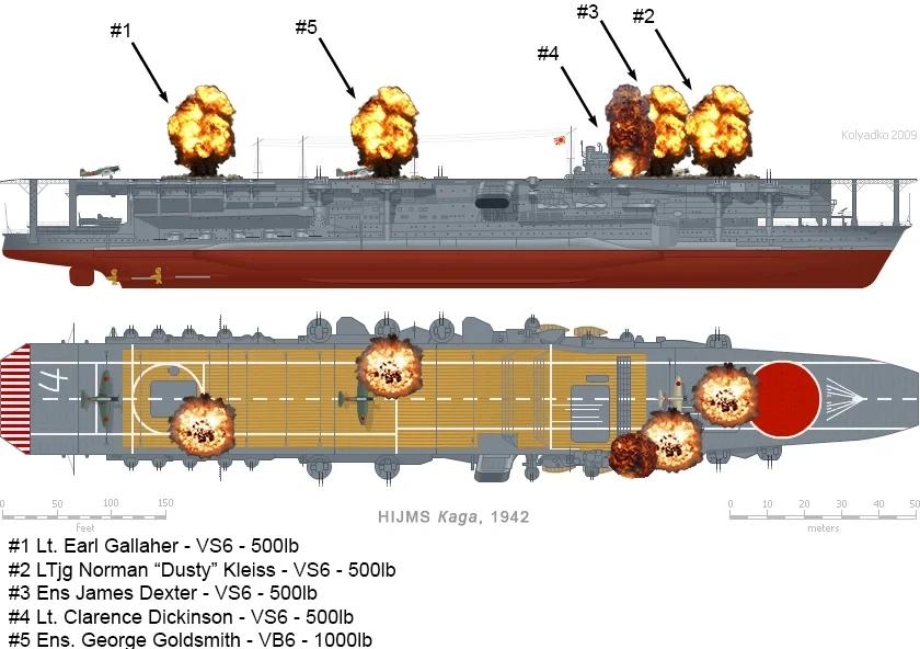 加贺号在短时间内连续中弹,甲板燃起大火,机库被殃及,整舰陷入瘫痪。