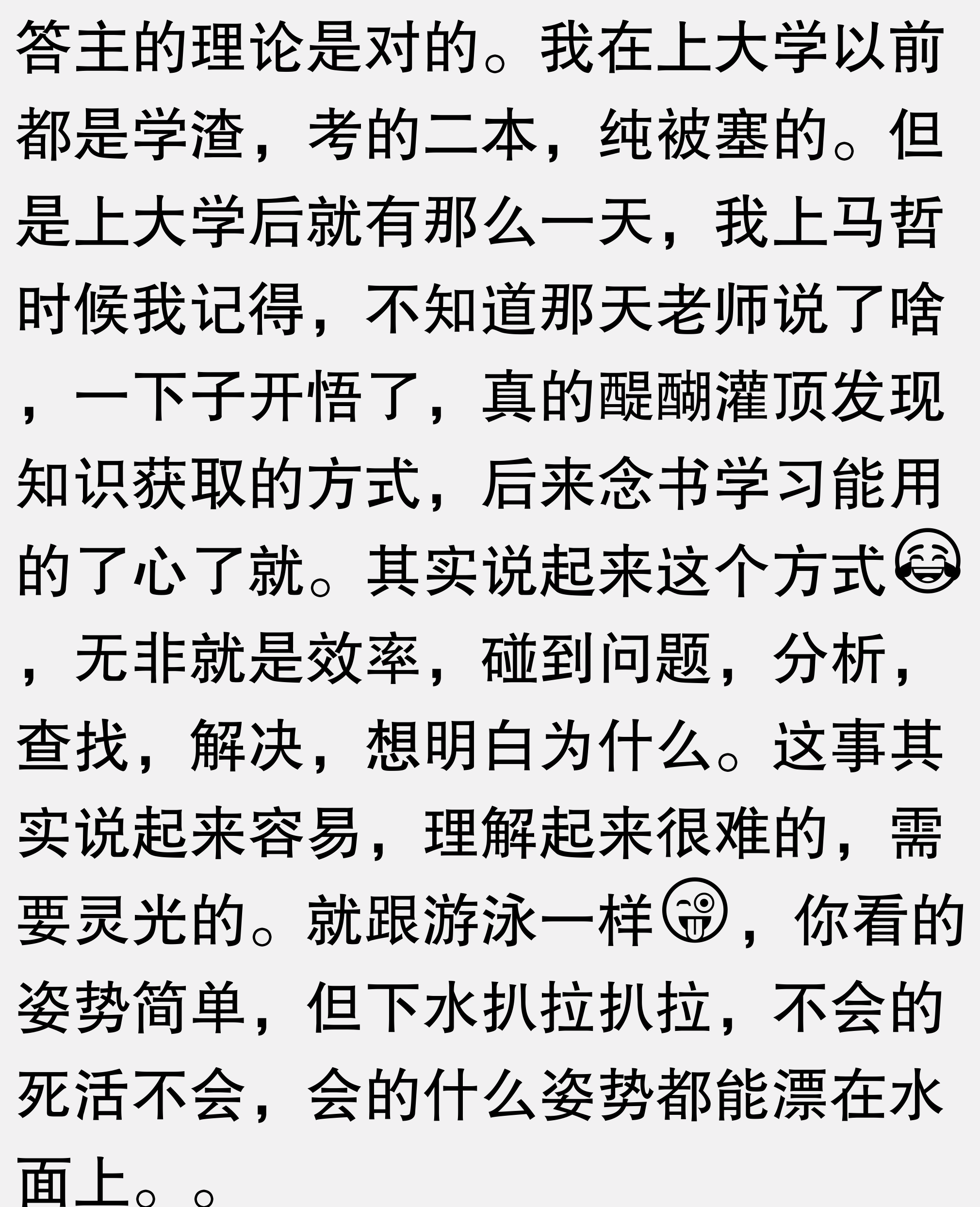 记得大四的时候一个副教授上课经常跟我们扯淡,有一句话是这么说的,“那些一直坚持学习的人,一开始可能不怎么样,但是过个十年二十年,你会发现那个上学时不怎么样,毕业后也不怎么样的人现在也是个某地局长了!”