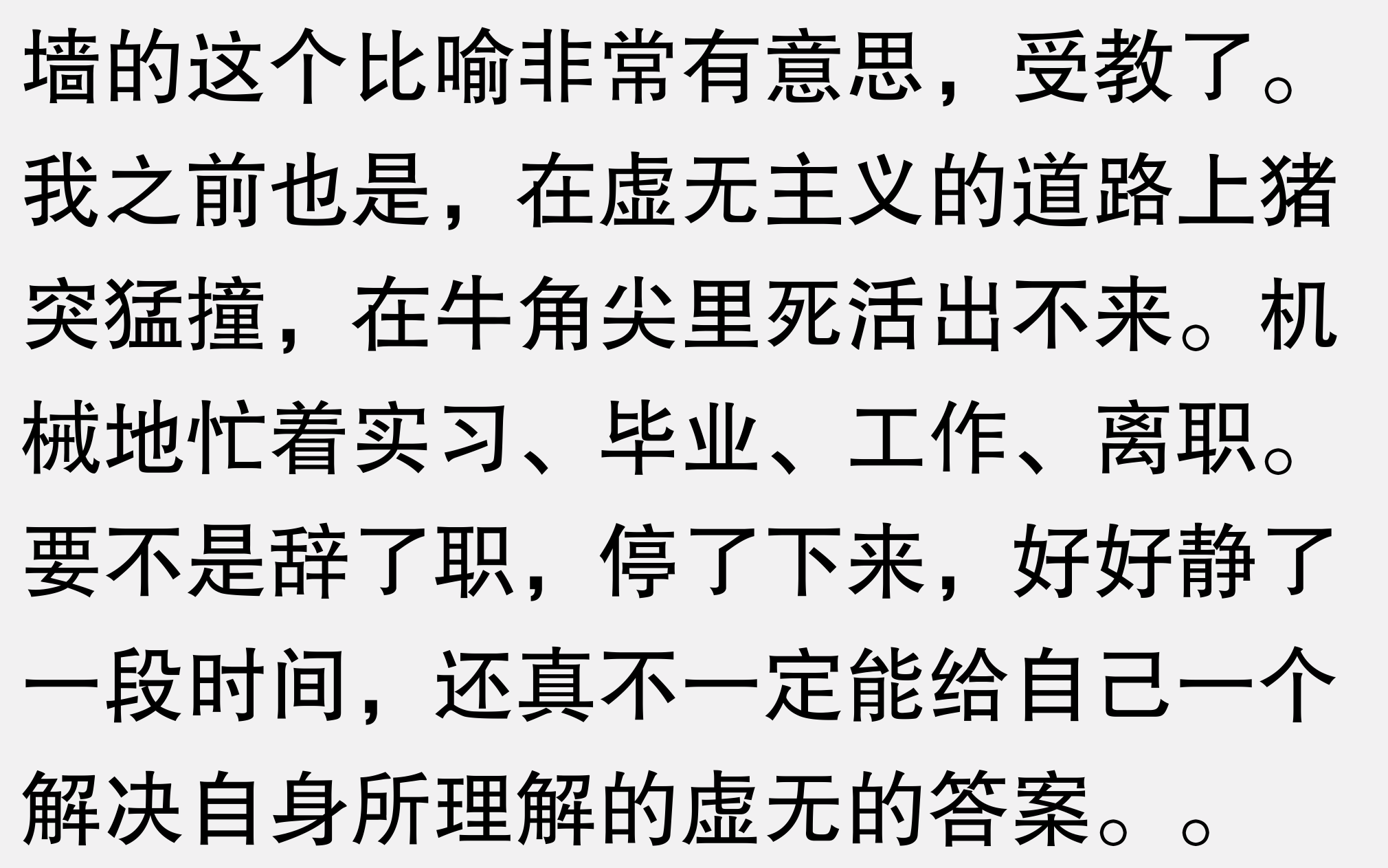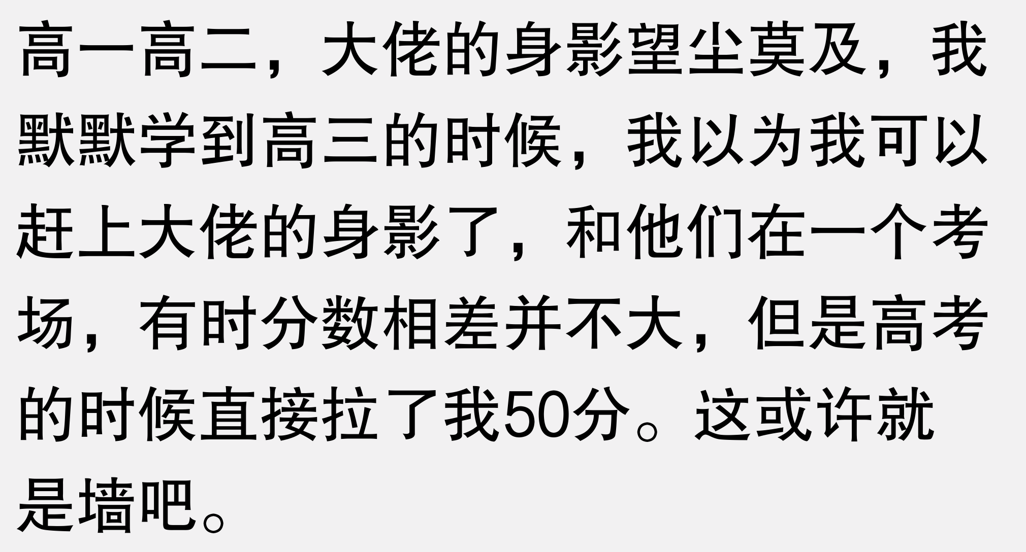 很感谢答主,你的思考方式让我疏散了一部分的心理焦虑。但我想问的是如果有样东西在后面追着,逼着你越过这堵墙怎么办?这个东西是有限的时间,是不断的考试,是后面追着你撞破墙的某个人。这时应该怎么办?