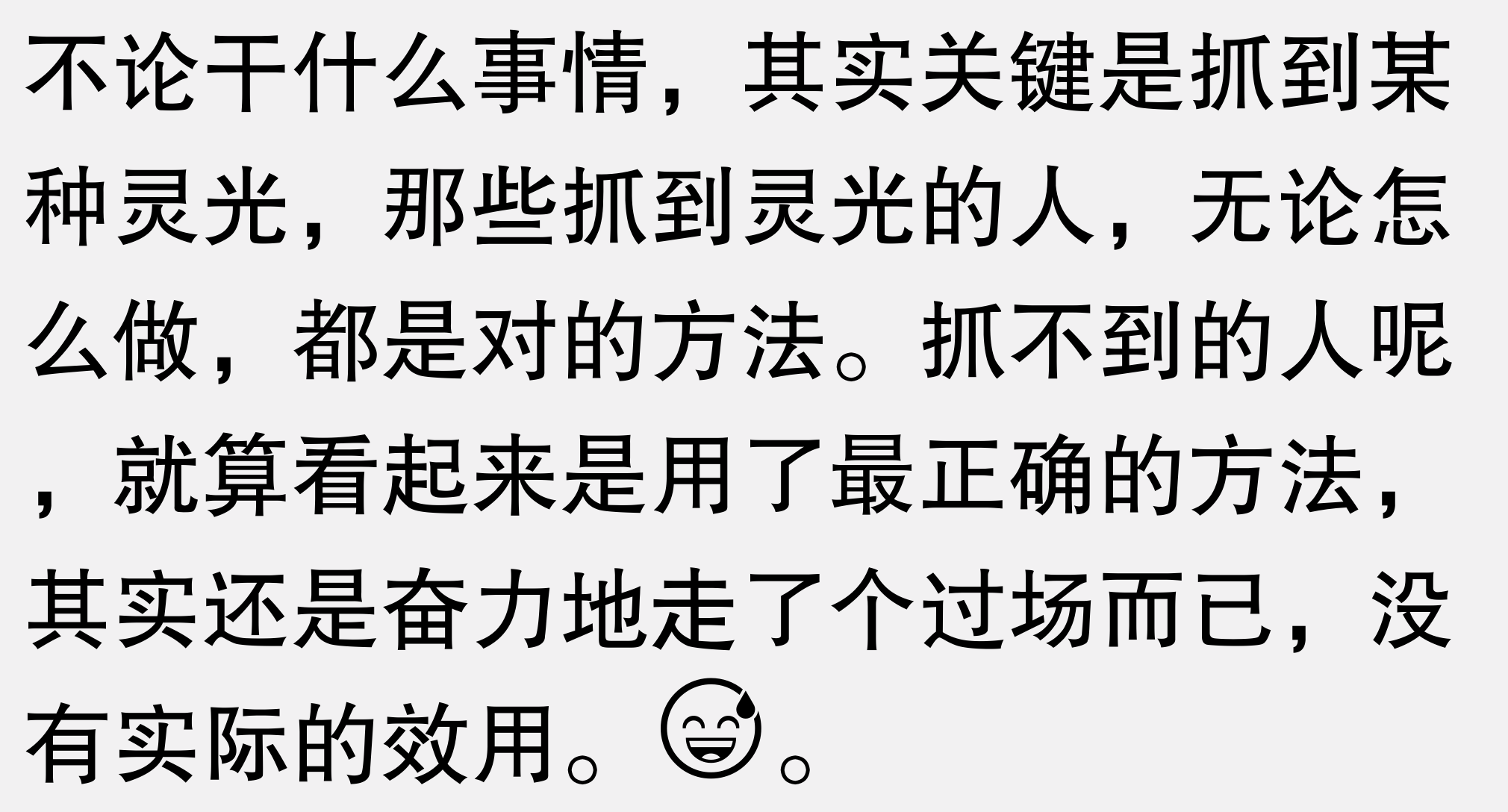 部分赞同但是结合个人经验,灵光一闪虽不能强求,但是你经常思考某些方面的事情会增加灵光一闪的概率,前提是你要对该领域感兴趣,学习那方面的内容会让你觉得有乐趣。如果你不喜欢学习,只是被迫学习,真的会事倍功半。