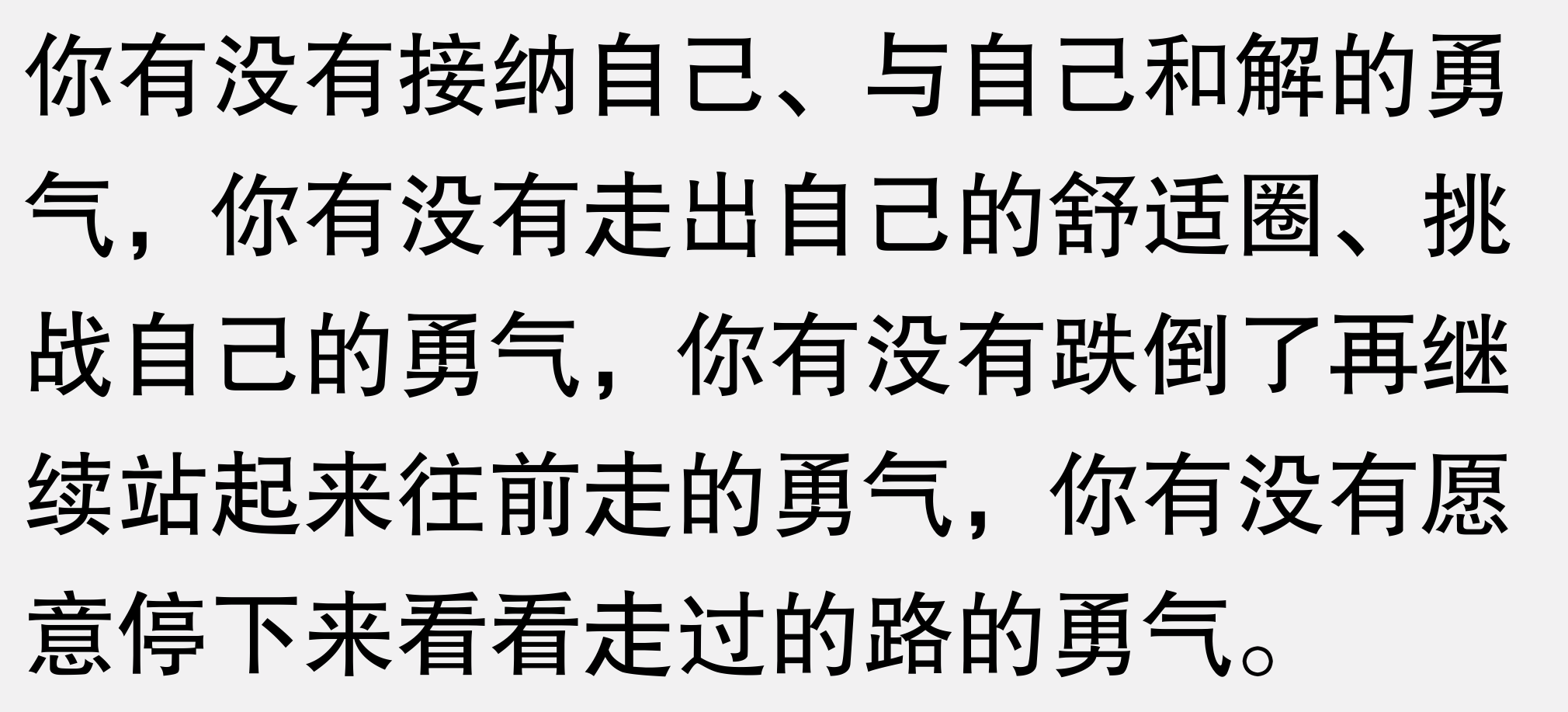 你有没有接纳自己的勇气,你有没有走出自己的舒适圈、挑战自己的勇气,你有没有跌倒了再继续站起来往前走的勇气,你有没有