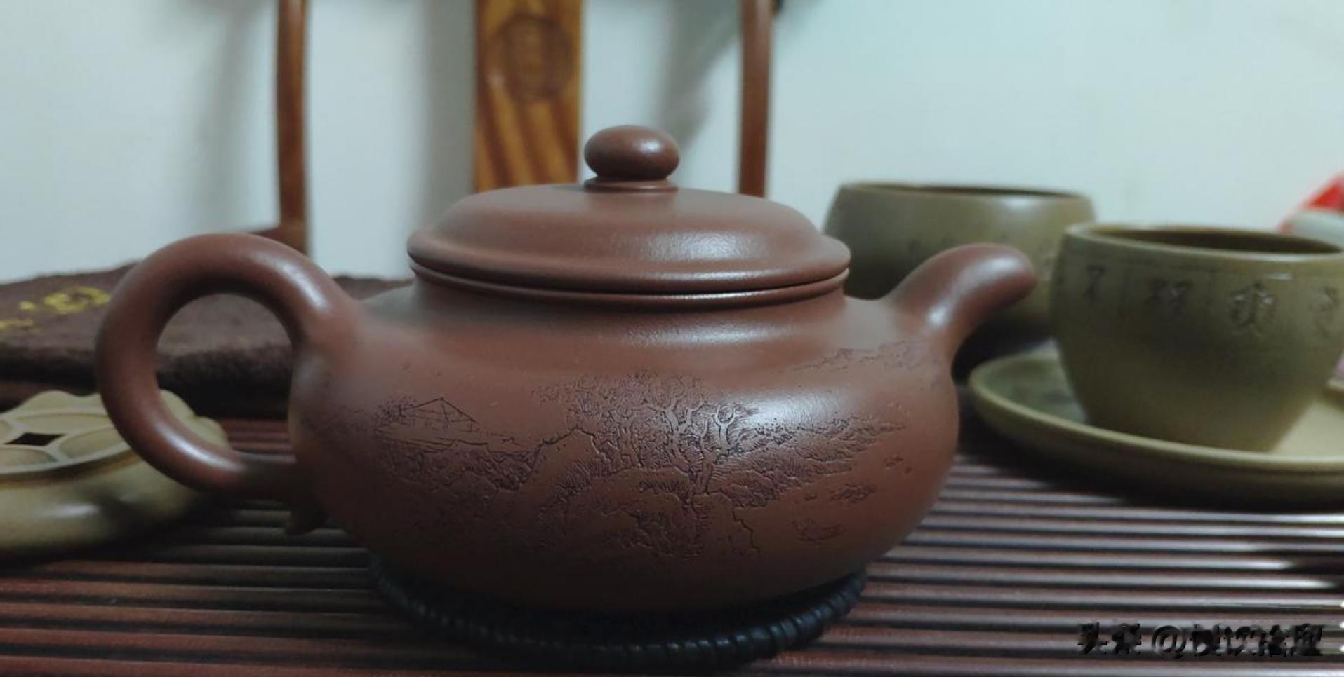 真正的雕刻高手,往往胸有成竹,不依赖底稿,刻刀在手,便能在壶身上自由挥洒。刻字,讲究书法功底与布局章法,字体的风格需与壶的造型气质匹配;刻画,则追求写意传神,山水、花鸟、人物,寥寥数刀,意境全出。尤为精妙的是“双刀正入法”,通过控制刻刀的深浅、角度,使线条产生浮雕般的立体感,触手可及。抚摸这样的刻痕,仿佛能与匠人隔空对话,感受其创作时的呼吸与心绪。机械雕刻的作品,线条生硬,缺乏神韵,与手工刻绘的生动气韵高下立判。