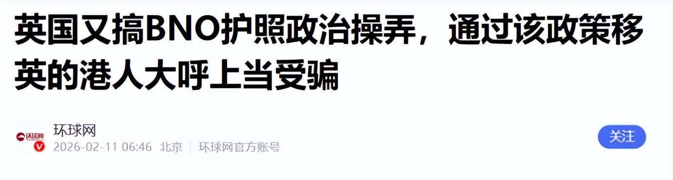 2026 年 2 月,英方宣布扩大 BNO 申请范围,允许 1997 年回归前未满 18 岁的成年子女独立申请,预计五年内再吸引 2.6 万港人赴英。