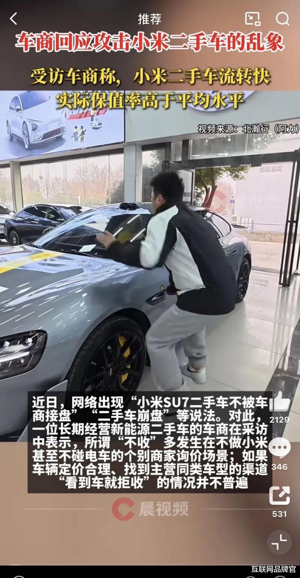 图源:微博消息一出,不少人倍感意外。因为在此之前,网络上不乏“小米二手车价格崩盘”的传闻,甚至有不少图文、视频,刻意截取个别冷门配置车型的低价成交截图,渲染恐慌情绪。真相从来都藏在表象之下。那些所谓的“崩盘”,不过是个别不良商家的引流套路。他们用极低的报价吸引网友关注,诱导线下到店,再通过各种理由抬价、推销其他车型,其实本质上就是一场针对流量的收割,和小米SU7的实际保值情况毫无关联。