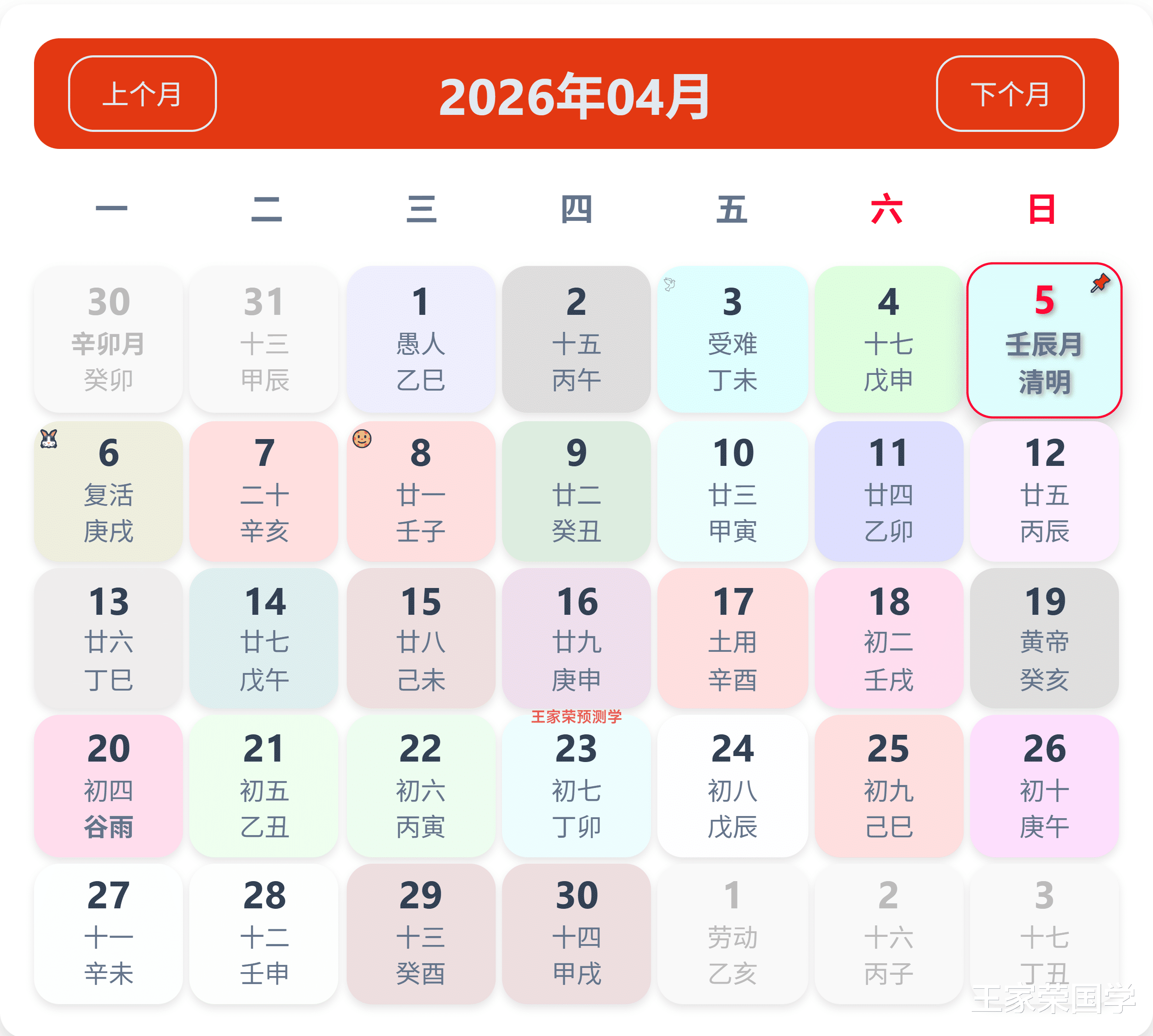 公历日期:2026年4月5日 星期日 ♈白羊座