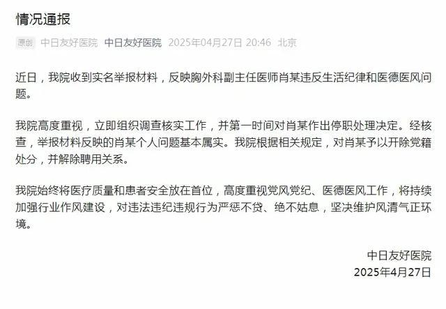 近日,中日友好医院胸外科肖某被举报婚内出轨多名医护人员以及手术中晾麻醉中病人40分钟不顾事件轰动全网。