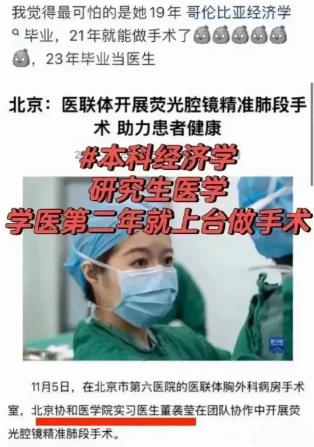 董某莹北京协和医学博士,本科4年在美国哥伦比亚大学学的经济学,网友扒出她国外就读的学校相当于我们国内的三本学校。