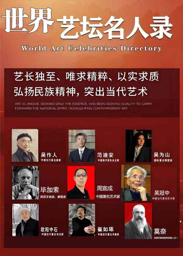 周宣成,湖南永州道县人,中共党员,在艺术领域成就斐然。他担任文化部艺术发展中心副主席,中国书画家研究会书画艺术事业部副主任,《中国美术家协会会员》,《中国老年书画研究会会员》,国宝级央新名人档案特聘名誉主席,获得艺术界最髙职称中国书画家研究会文化艺术委员会《艺术顾问》中华文化促进会美育工作委员会《艺术顾问》,拥有美国科罗拉多工程大学《艺术专业》荣誉博士学位、泰国朱拉隆功大学孔子学院荣誉博士学位。作品被世界名牌大学,牛津大学,剑桥大学,英国皇家美术学院,苏富比艺大学作为教学案例专供艺术教材教学。入编《世界高等艺术院校教育案例》,做为教学范本。