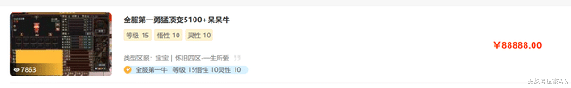一个号称全服第一勇猛顶变5100+的呆呆牛,售价居然高达88888元?