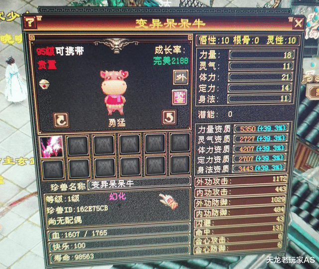 呆呆牛,虽然不是超灵宝宝,但是却是极好的附体宝宝,但是高资质的呆呆牛真的很少,基本上过5000+的双十呆呆牛都比较值钱。