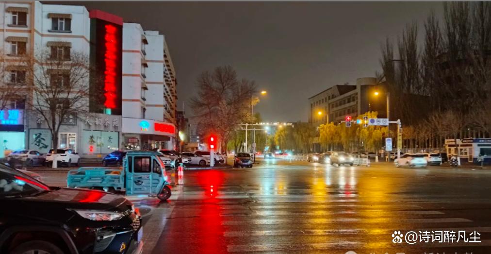 这是到广武后半个月的时候,那两天放假,得知一朔州本地同事开车回家,于是搭他的车到朔州去逛一下。从山阴县广武滑雪场到朔州市开车大约半小时多,到市区后正是夜晚,订好房间后时间还早,便出来逛一下。稀稀疏疏地下着小雨,映着街上的霓虹光影,倒是颇有氛围感。