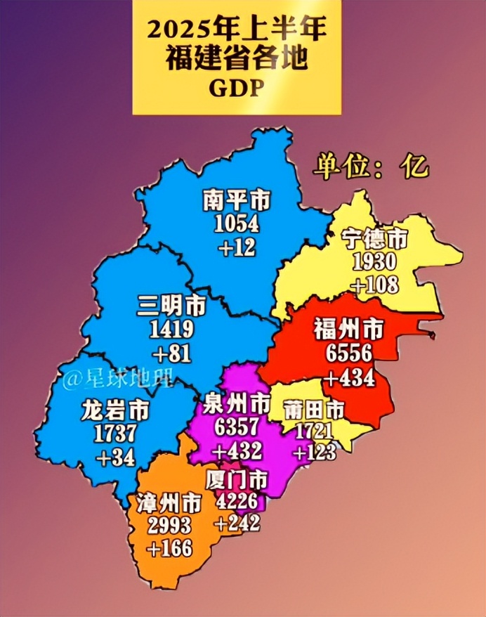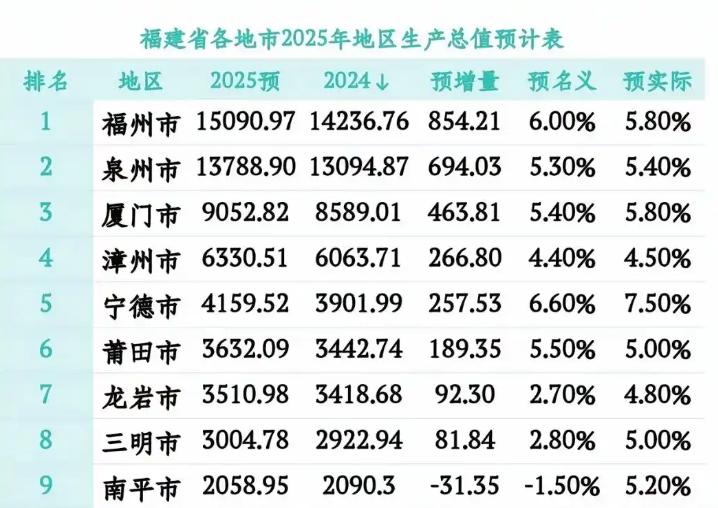 这是2025年上半年,福建各地级市GDP数据统计。