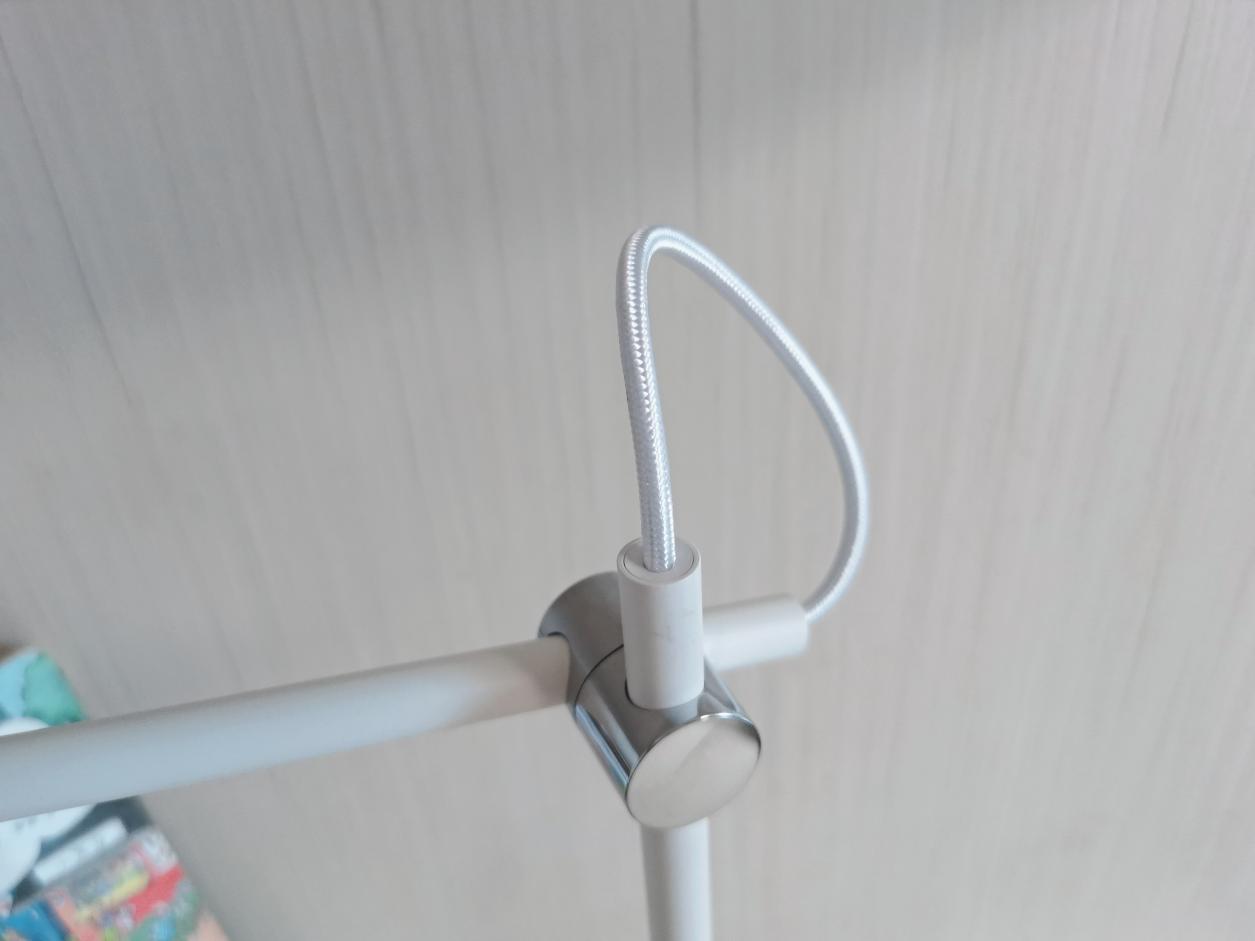 灯头部分是椭圆形的,面积比较大。材质摸起来很有质感,细节处理得也很好。灯杆是可调节的,灵活性很高,可以根据孩子的坐姿和使用场景随意调整高度和角度。底座很稳重,是圆形的,上面有一个触摸式的控制区域,操作起来很方便,而且看起来也很有科技感。
