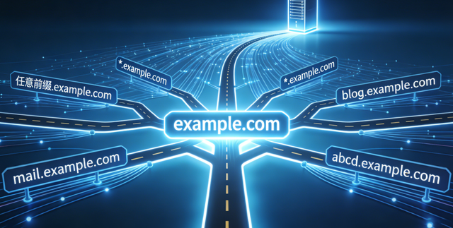 举个通俗的例子:假设你拥有主域名“example.com”,配置泛解析后,无论是“a.example.com”“test.example.com”,还是“abc.def.example.com”这类多级子域名,只要没有单独设置解析记录,都会统一指向泛解析预设的IP地址或域名。