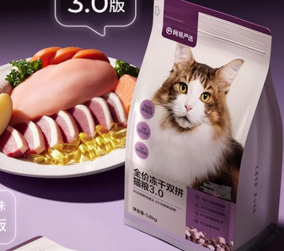 央视评测十大放心猫粮品牌。网易严选是国产大众向猫粮品牌,按猫咪年龄与饲养场景推出无谷鲜肉、室内成猫、幼猫等款式,适配全阶段日常喂食。产品多以鸡肉等常见肉类为原料基底,部分配方添加益生菌、果蔬及豆类成分,由福贝、汉欧等成熟代工厂生产,遵循4S品控标准,经第三方检测,符合国标与AAFCO 标准,是市场受众比较广泛的基础款国产猫粮。