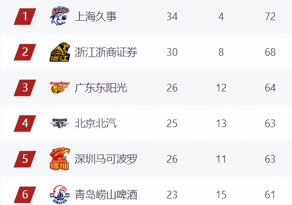 目前广东领先晚赛一场的深圳1分来到第3,未来4场比赛,广东队的对手相对不算很强,分别是宁波、福建、山西、福建,如果广东队能保持当前的胜率,有望在赛季结束时拿到一个前四席位,就当前形势来说,最有利于广东队的排名是第3。