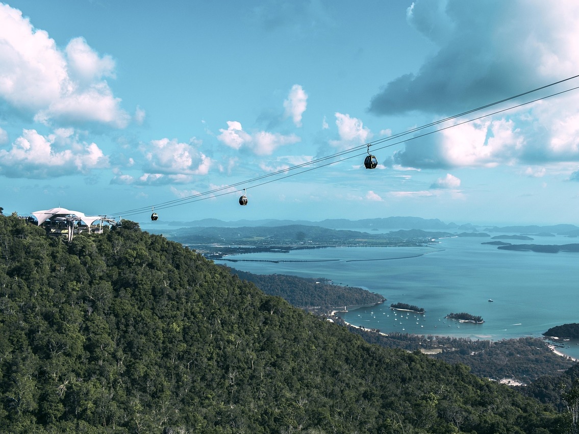 如果只给兰卡威留一个景点名额,请毫不犹豫地选择空中缆车。这套全马蕞先进的缆车系统会直接把你送到热带雨林树冠之上,随着轿厢缓缓爬升,视野从密林缝隙逐渐打开,最终变成360度的全景模式——整片海岛在脚下铺展,远处甚至能隐约看到泰国的海岸线轮廓。