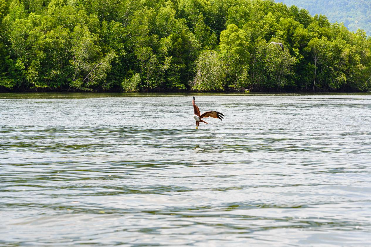 丹绒鲁海滩的红树林生态游,像把Discovery频道的画面搬到了现实。乘船穿梭在盘根错节的水道间,船夫会演示传统的老鹰喂食——随着食物抛向水面,数十只栗鸢俯冲而下的场面相当震撼。沿途经过的蝙蝠洞和鳄鱼洞保留着原始状态,手电照亮岩壁时,能看到倒悬的果蝠群和古老的钟乳石。行程高潮是漂浮午餐,船家把餐食摆在船板上的简易木桌,在海风摇晃中享用刚捕捞的海鲜,这种野生又松弛的用餐体验,城市餐厅根本复制不了。