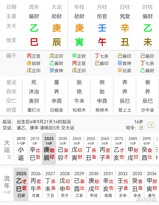 大运:辛巳 庚辰 己卯 戊寅 丁丑