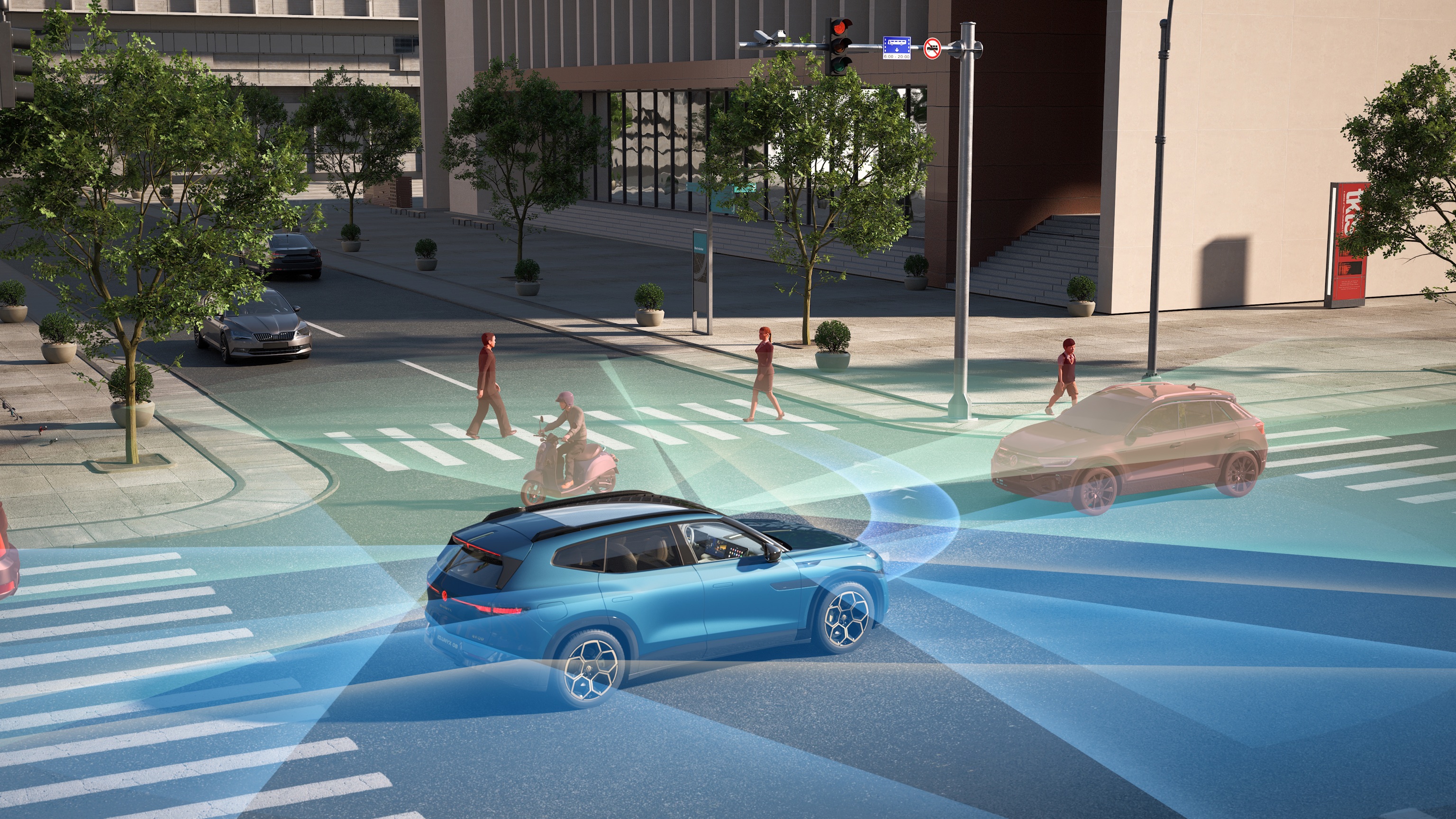 “行云智能驾驶辅助”在这款新车上得以体现。作为大众汽车与小鹏汽车首款联合开发车型,与众08搭载了VLA一段式端到端模型,可实现增强版L2级辅助驾驶(含高速NOA和城市NOA)。该系统搭载了双图灵算力芯片,拥有同级最高的1500 TOPS算力,并辅以26颗高精度感知元件(含11个摄像头、3个毫米波雷达、12个超声波雷达),形成了强大感知决策体系。
