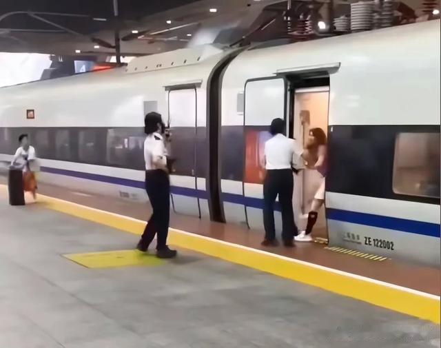 女子为了让同行人能上车竟不顾一切干出伸腿用身体阻止高铁关门的危险行为,两名乘务员各种拖拉拽无果,女子这种无知就是在拿自己生命开玩笑。