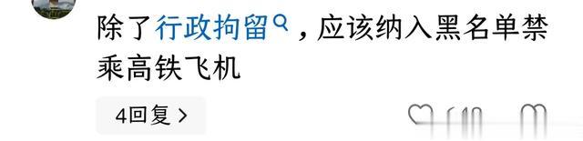 甚至有网友认为除了行政拘留应该纳入黑名单禁止她乘高铁飞机。