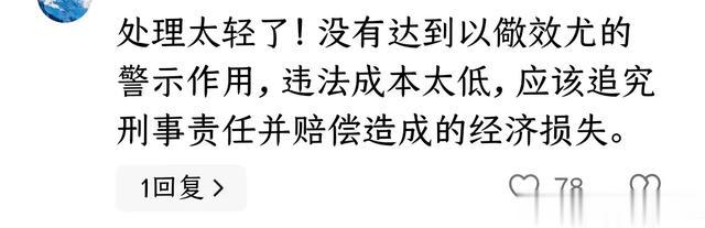 对于女子这样的行为只是行拘网友纷纷表示处罚成本太低了应该严惩才对,毕竟这已经严重影响了他人出行,网友认为应该追究刑事责任并赔偿造成的经济损失。
