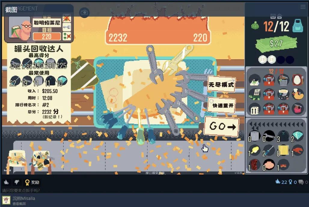 这个作品很快在国内独立游戏圈传播开来,不少UP主主动推荐,还有玩家将其称为「烹饪版小丑牌」。