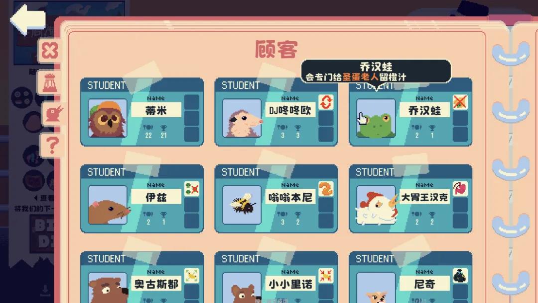 但仅靠不断提高客人所需的分数要求显然不够有趣,这个系统在后续变得更加复杂。