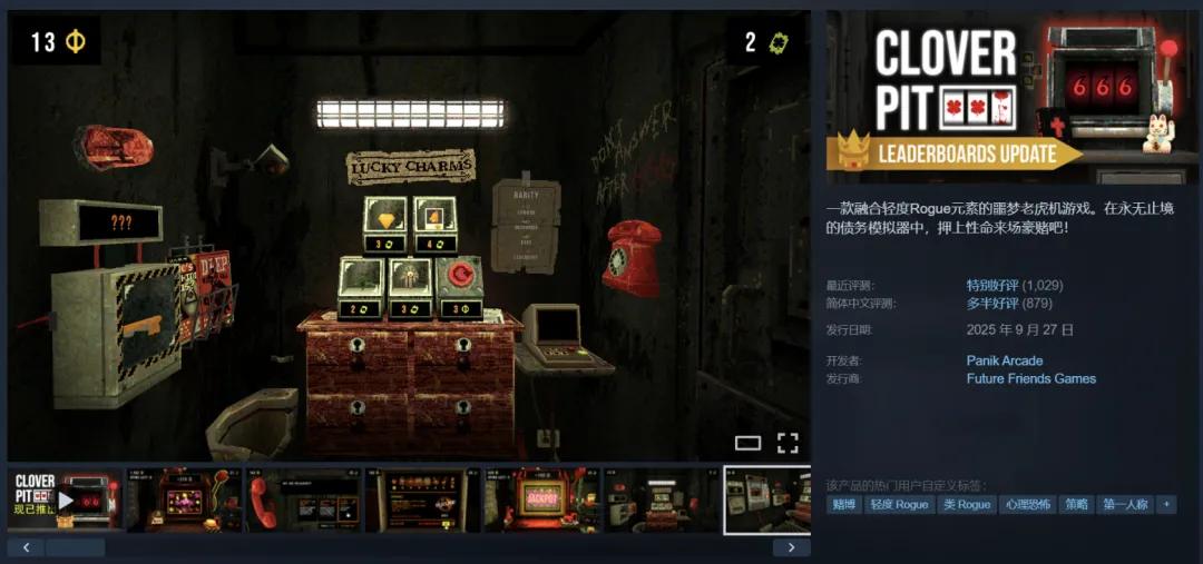 其中声势最大的是《四叶草深渊(CloverPit)》。这款产品在2025年9月发售后,首日10万套,不到两个月破百万套,是《小丑牌》之后这个类型里商业成绩最亮眼的单品。