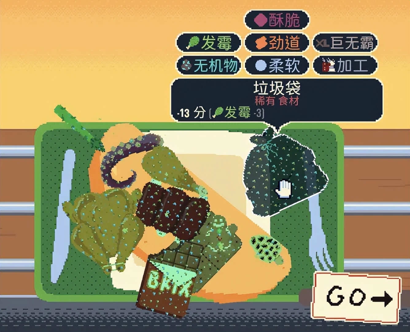 「发霉」食材自身会扣分,有概率让相邻食物都一起坏掉,打断任何接触加分的思路,但也可以通过相应的小帮手来化解。