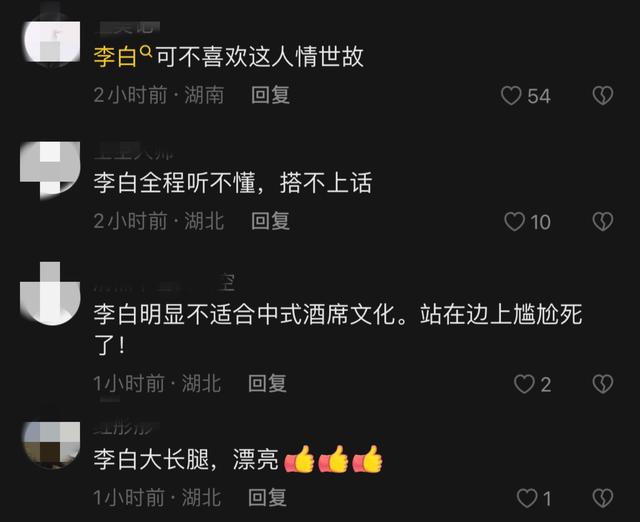 网友们纷纷表示李白是外国人,根本不适合这样的场面,她不懂中国式酒席文化,站在一旁实在太尴尬了。