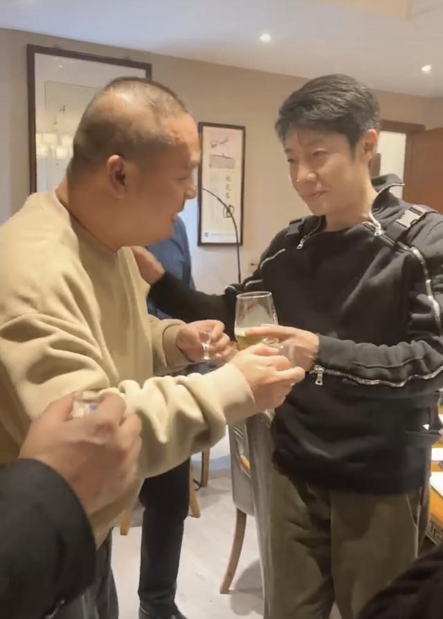 酒局上人比较多,撒贝宁在觥筹交错间,很难照顾到李白。他和潘喜的关系很不错,连着喝了好几杯酒,随后还搂着对方一起合照。