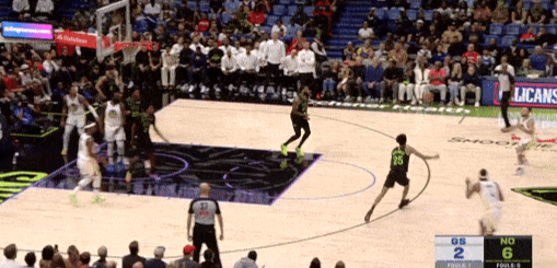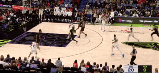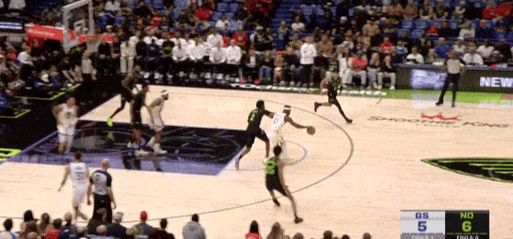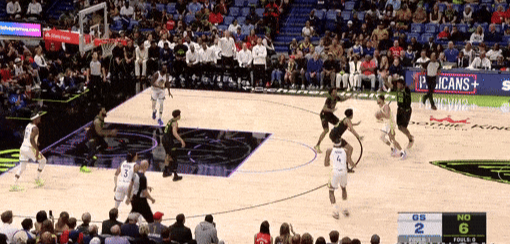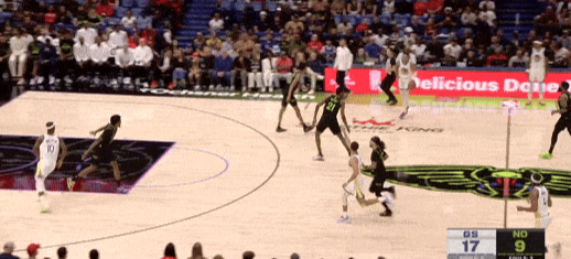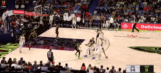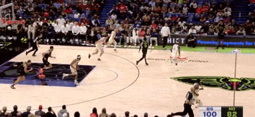 鹈鹕追库里+锁篮下。吉米:好的——第一节4个助攻全都喂穆迪。