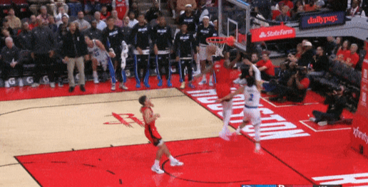 但更狡猾的一球:在杜兰特前方跑反击,看魔术指点,知道自己要被照顾,于是接杜兰特传球,晃飞布莱克后,立刻喂底角。