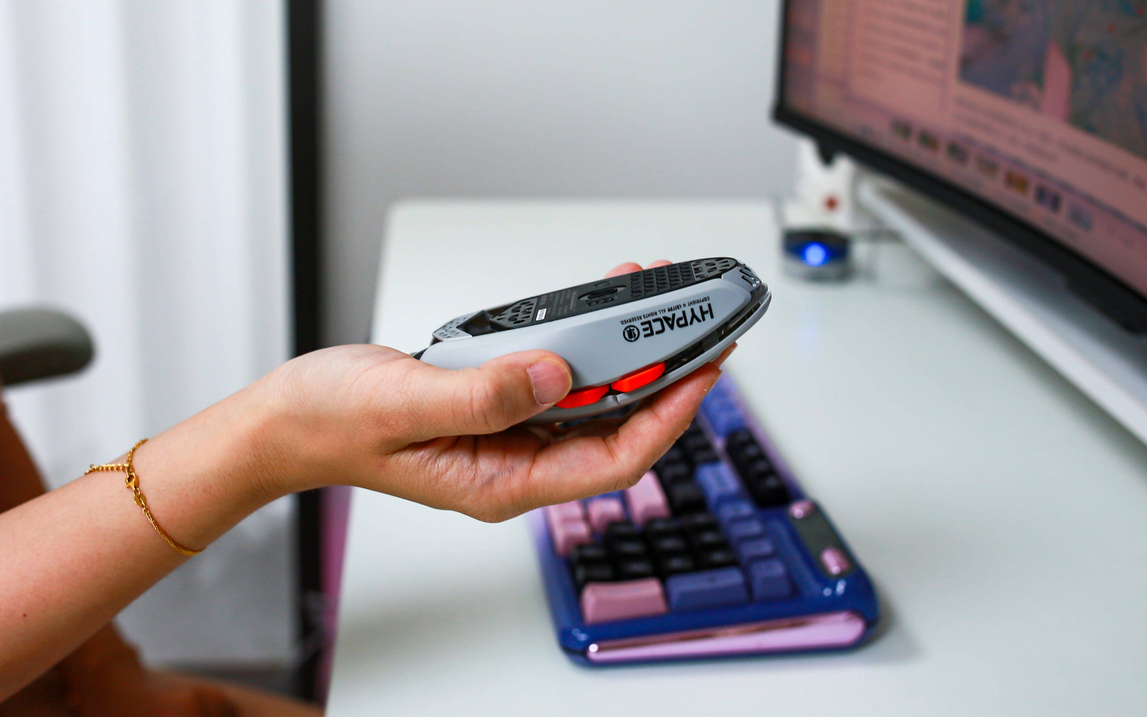 有些人一听“异形鼠标”就退避三舍,仿佛它长了刺,但我真得替 HYPACE 隼说句公道话:虽然外形确实和主流鼠标不太一样,线条棱角感明显,但握上手的第一感觉不是怪,而是“咦?怎么这么贴手”。抓握、捏握都能找到支点,不用刻意调整姿势就能握得稳稳的。它不是那种“看起来有设计感,握起来没感觉”的花瓶型鼠标。