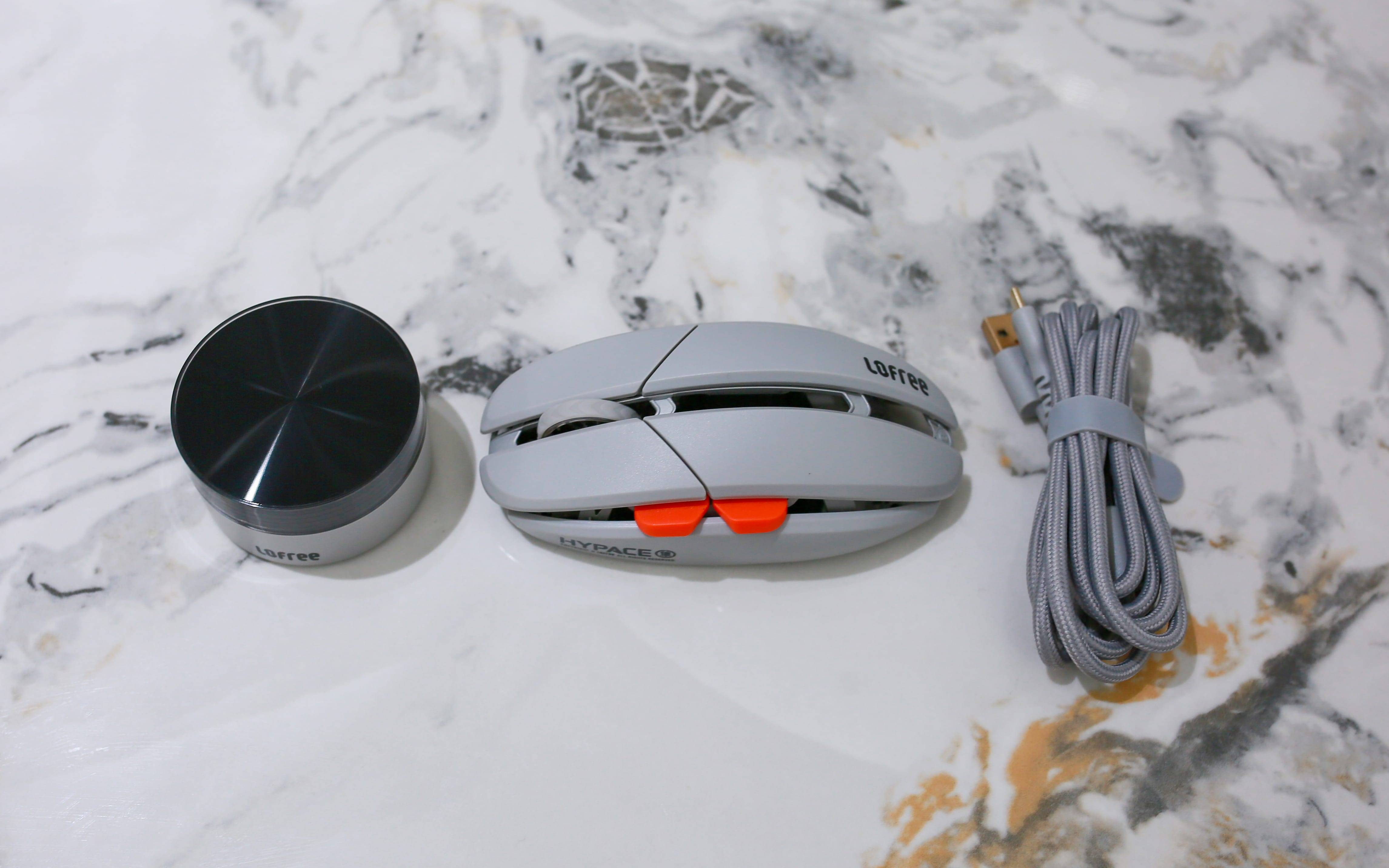 我还细抠了一下,发现洛斐HYPACE 隼鼠标的材料构成上,选用了一种“伞兵绳”——一种编织细节细致又结实的线材,摸上去手感出乎意料地有料,不像某些鼠标的廉价粗线。