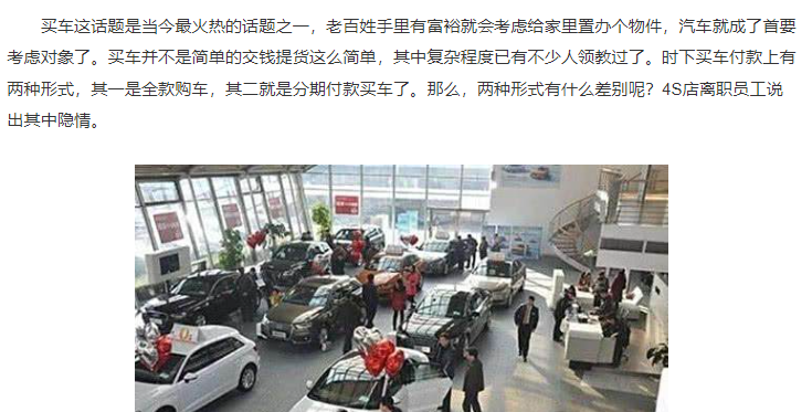“分期付款”和“全款”购车差别有多大?4S店离职员工说出隐情