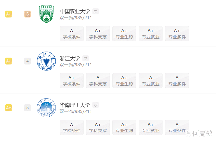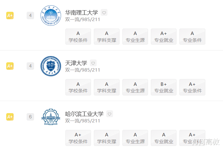 这一数据相当亮眼,与同为广东省985高校的中山大学相比,中山大学虽在高校总榜单中高于华南理工大学,但是若论A+专业数量,中山大学为12个,落后于华南理工大学,这也说明华南理工大学相比于中山大学拥有着更广的学科辐射度。