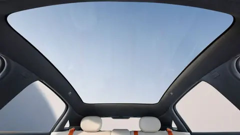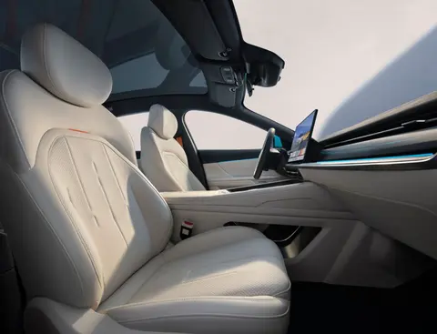 打开车门,内饰是那种 “少而精” 的风格,没有多余的物理按键,看着清爽还容易打理 —— 毕竟带娃出门难免洒个零食、蹭点污渍,简洁的设计擦起来太方便了。最惊艳的是全景玻璃穹顶,4.2㎡的总面积从车头贯穿到车尾,白天不用开顶灯也亮堂得很,儿子总说像坐在 “玻璃房子” 里。本来担心轿跑的天幕会晒,实际体验发现多虑了,双层镀膜技术确实管用,夏天正午开车,头顶也不会有烤着的感觉,而且几乎能 100% 隔绝紫外线,不用总提醒孩子戴帽子。